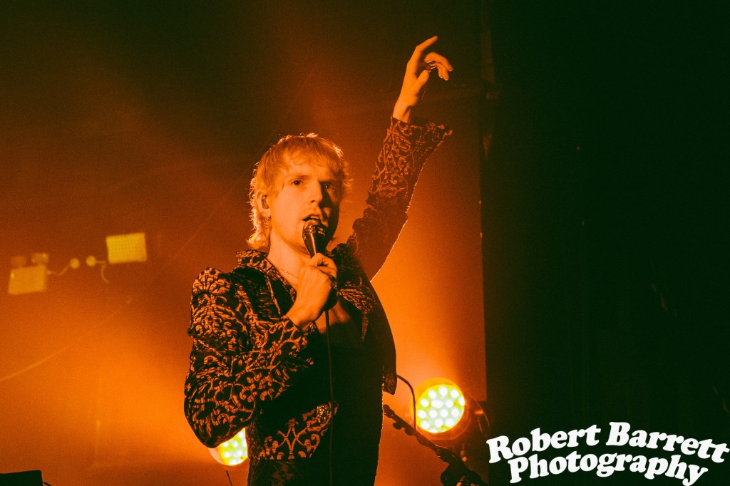 Emerging onto stage through smoke and lights Sunny K set their audience dancing from the off, with their ambitious and fast-paced track, ‘Higher States’. With lead singer Oscar Pollock commanding an extremely powerful set, dressed in knee-high leather boots and a corset and the rest of the five-piece clad in glittery, lacey and floral outfits which I feel demonstrates the entire band’s increased confidence in themselves and in their lane in music.