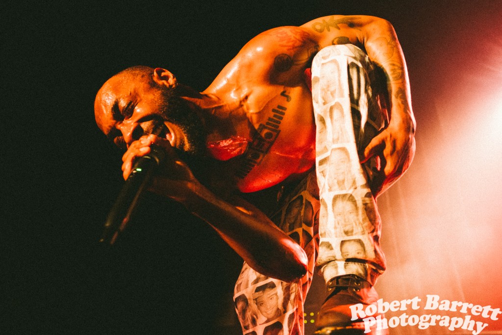 Out of the darkness emerged JPEGMAFIA, or “Peggy” as the fans affectionately called him. From the off this was a one man show, after a quick selection on his laptop he charged to the front barrier much to the hardcore fans delight.