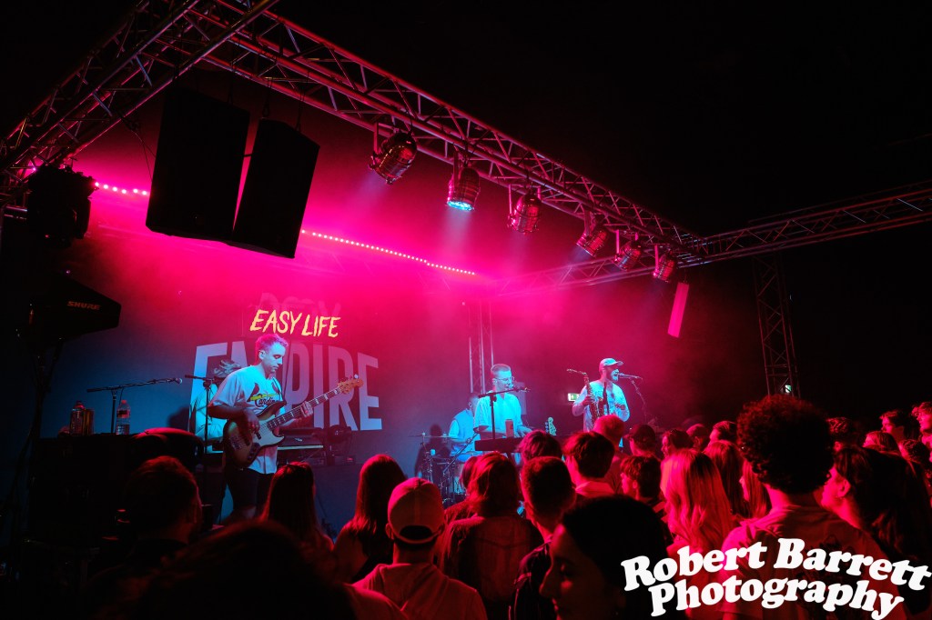 The last time I took the escalator up to what is now the HMV Empire, it was to purchase a pair of £10 trainers. Like a caterpillar the Empire cocooned up at the start of the pandemic and has now emerged as a beer filled butterfly within its new premises at Hertford Street. Now instead of cheap sportswear the venue was filled with excited fans eager to see Leicester’s finest five piece Easy Life.