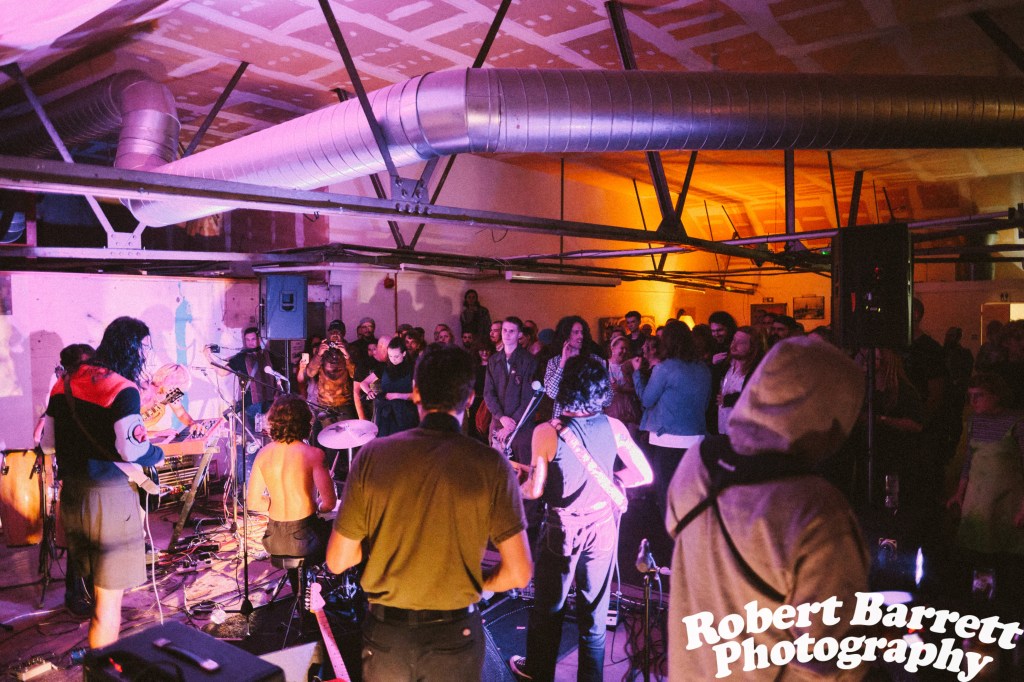 A last minuet switch in venue had moved the gig from Fargo Village to the Litten Tree. The strange site of gig goeres were mixed in with the Coventry regulars pre gig making the most of the cheap pints. I still wasn’t sure what to expect until getting up the stairs, where we were greeted with an incredible new space full of artwork.