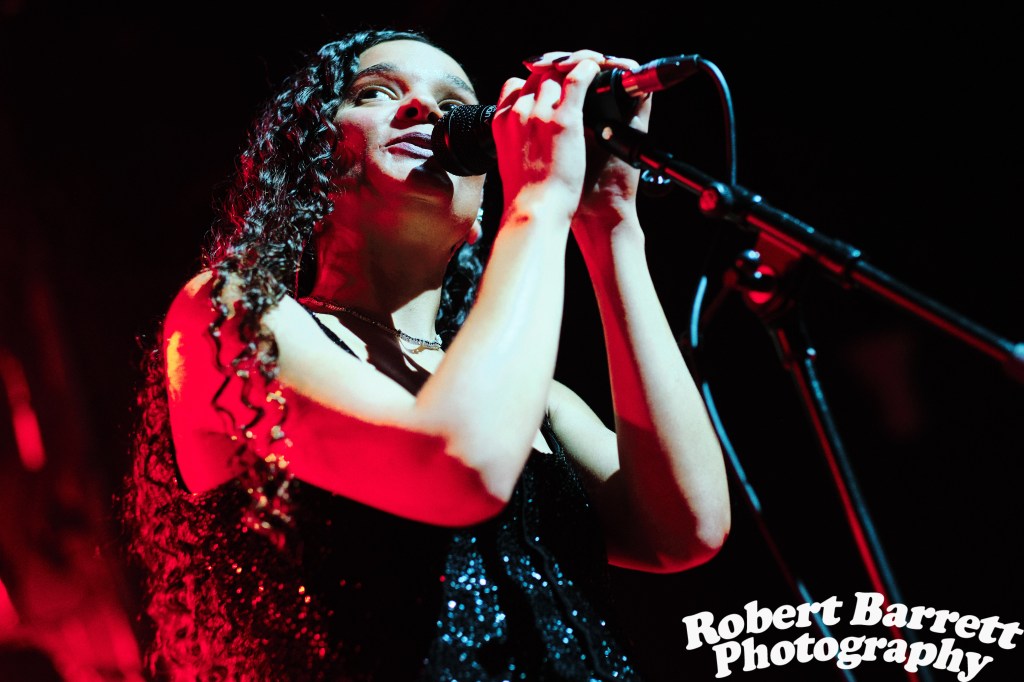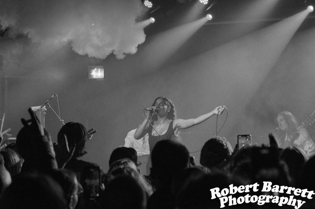 The night began with support Joviale who filled the former cinema who’s genre defying songs and some cracking use of her saxophonist. “Glass Peach” off her 2021 EP “Hurricane Belle” filled the room with its warm Steve Lacy sounding guitar and was a highlight of the set.