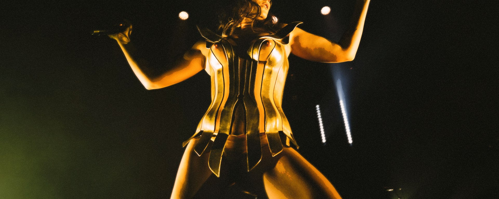 Kicking off in full throttle with her bouncy SG Lewis collaboration “Pineapple Slices”, Tove donned the stage in a roman gladiatorial garb (although I can’t imagine Russell Crow wearing this version), one of the many outfit changes of the night.